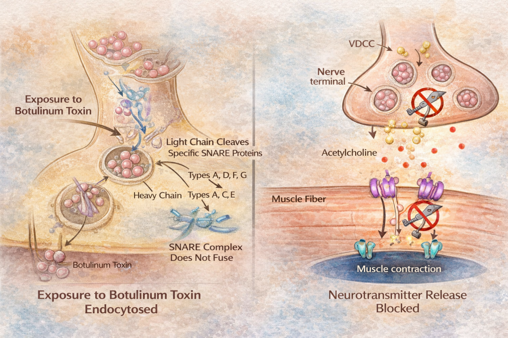 Botox works by blocking acetylcholine, the chemical messenger that tells muscles to contract